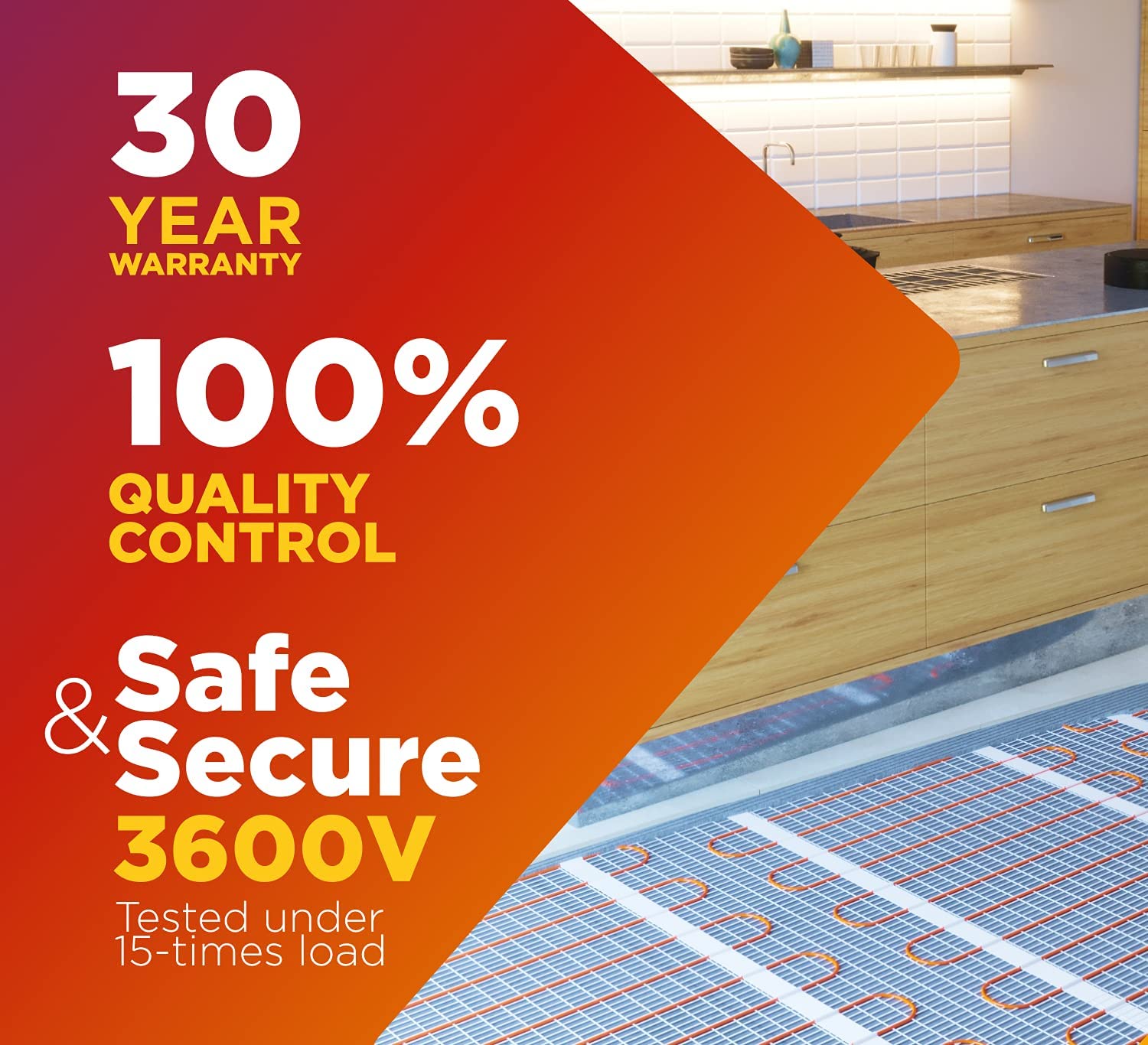 • SWISS ENGINEERED Electric In-Floor Heating System with 100% quality control; COMMERCIAL GRADE Manufactured with 30 YEARS of successful experience in electric heating cables, sold in 60 countries worldwide; ETL CERTIFIED